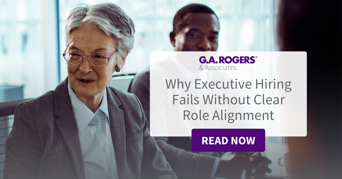 At G.A. Rogers & Associates, we help organizations define executive roles clearly before recruiting. We work with boards and CEOs to articulate role scope, authority, and success metrics in detail.